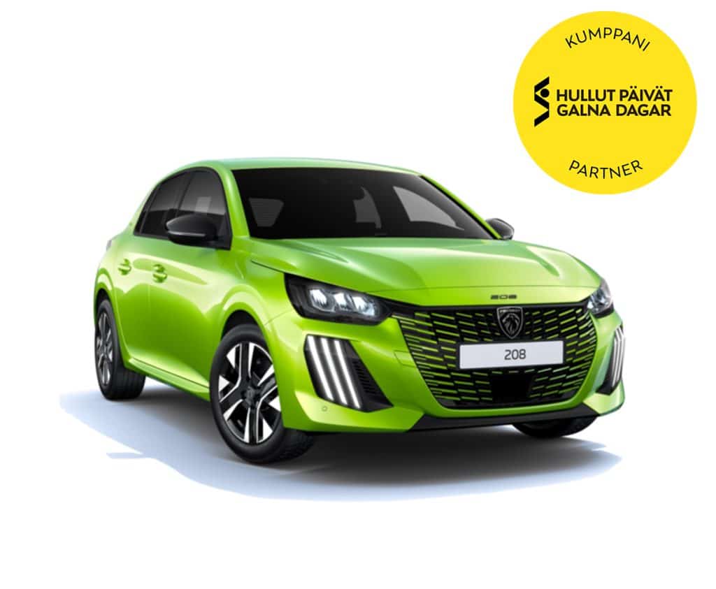 Peugeot 208 Easy Allure Hybrid 110 Automaatti | Hinta toimituskuluineen 24 990 €, vaihtoauto/käsiraha 4 948 €, rahoitettava osuus 20 437 €, perustamiskulu 395 €, Rahoitusaika 72 kk, korko 0 %, poikkeava viimeinen erä 6 248 €= kk-erä yhteensä 214,85 €/kk (sis. käsittelymaksu 15 €/erä). Todellinen vuosikorko 1,86 %. Korko sopimusajalta 0,00 €. Luoton ja luottokustannusten yhteissumma 21 516,98 €. Auton todellinen luottohinta yhteensä 26 465,00 €. Rahoitus edellyttää hyväksytyn luottopäätöksen ja kaskovakuutuksen. Palvelun tuottaa DNB Auto Finance Oy, Urho Kekkosen katu 7B, 00100 Helsinki. Kuvien autot erikoisvarustein. Autoja rajattu erä.